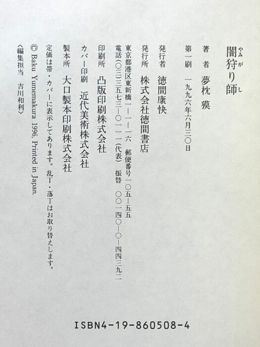 闇狩り師 ミスター仙人・九十九乱蔵 徳間書店 夢枕 獏
