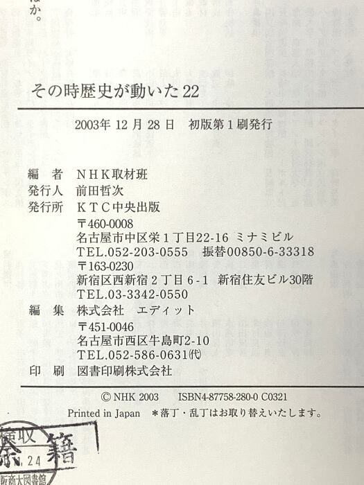 その時歴史が動いた (22) KTC中央出版 NHK取材班