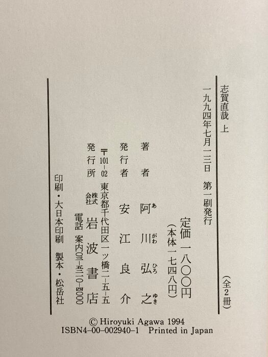志賀直哉 2冊(上・下) セット 1994 岩波書店