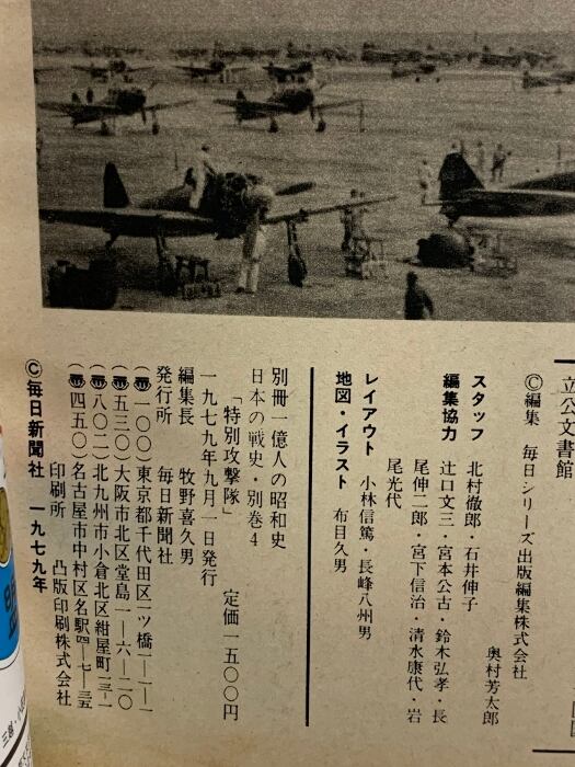タイトル:別冊1億人の昭和史 特別攻撃隊 日本の戦史別巻4 1979 毎日新聞社