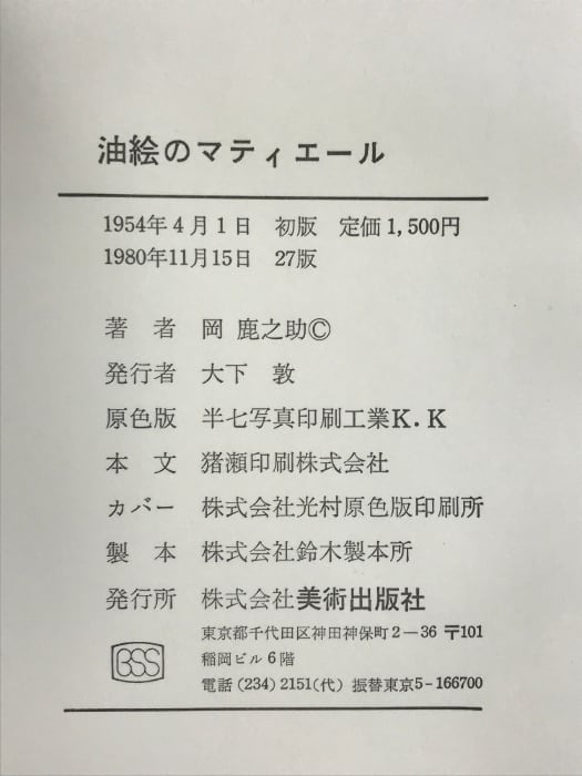タイトル:油絵のマティエール 発行:美術出版 著:岡鹿之助 1980年