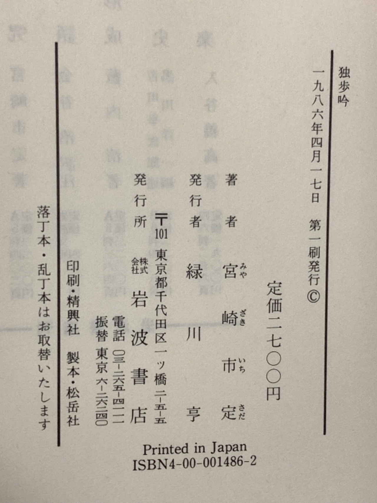 タイトル:独歩吟 岩波書店 宮崎 市定