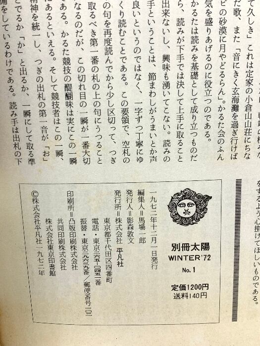 23 別冊太陽 WINTER’72 No.1 百人一首 光琳・光悦・探幽・素庵・国芳 昭和47年 平凡社