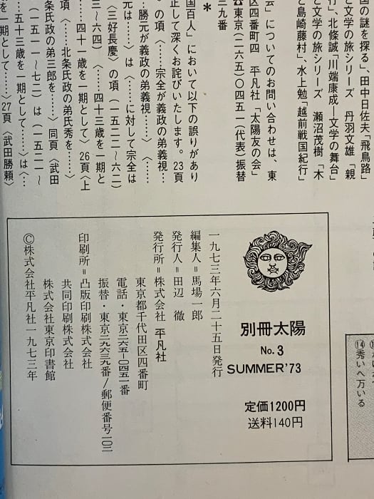 タイトル:25 別冊太陽 SUMMER’73 No.3 源氏物語絵巻五十四帖 昭和48年 平凡社