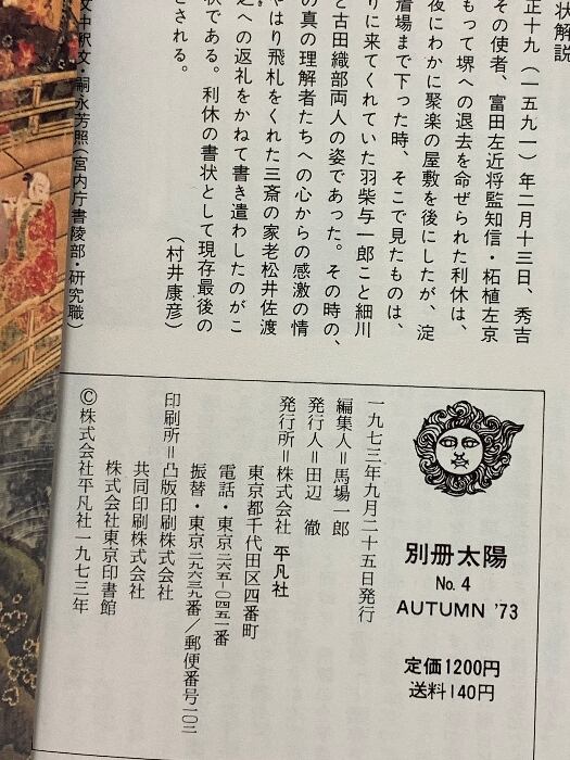 30 別冊太陽 AUTUMN773 No.4 茶 昭和48年 平凡社