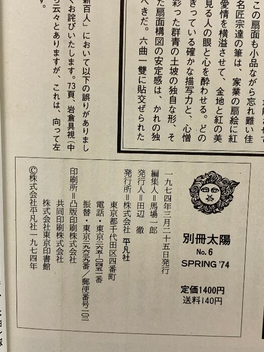 34 別冊太陽 SPRING774 No.6 琳派百図 光悦・宗達・光琳・乾山 昭和49年 平凡社