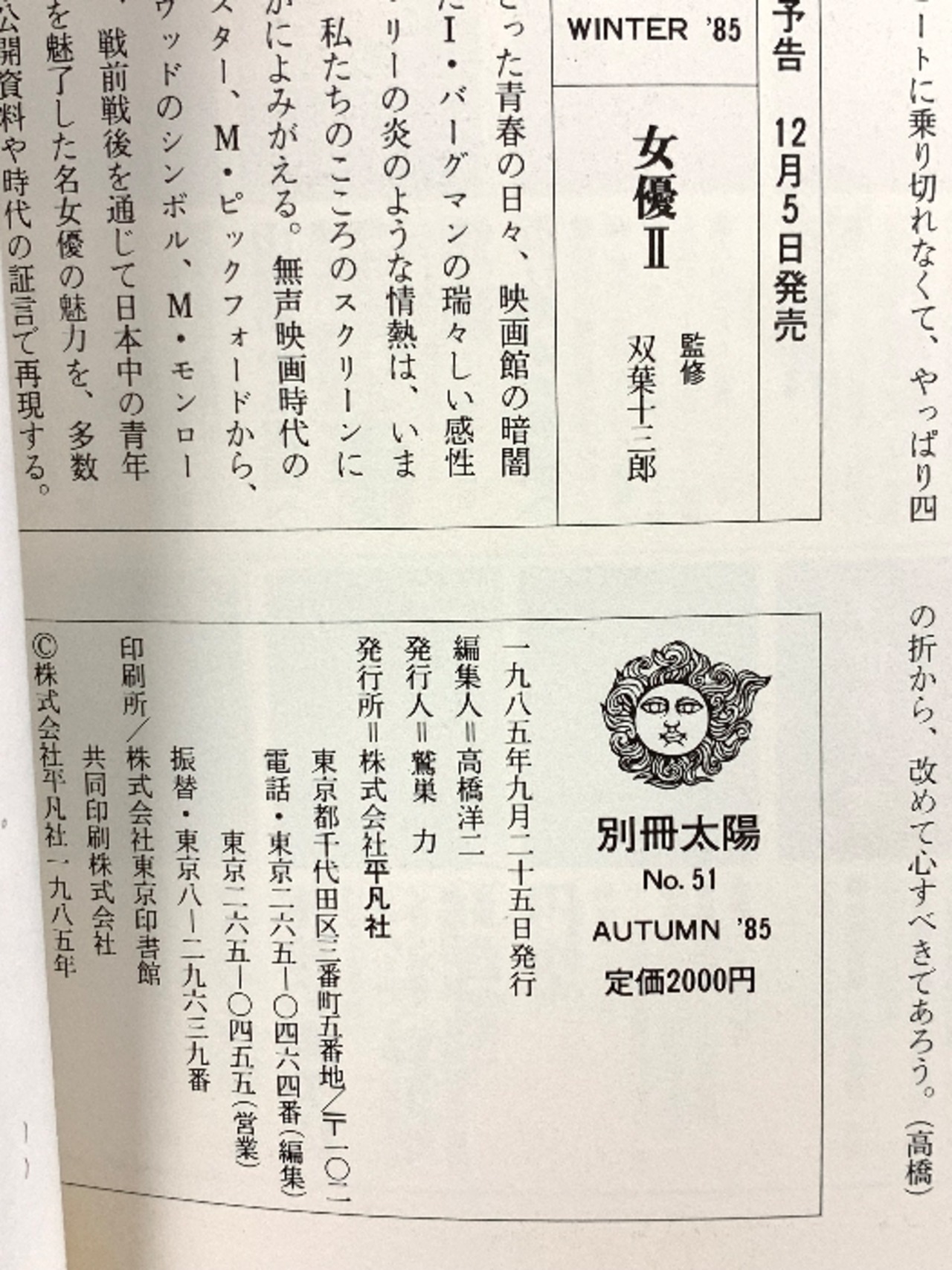 40 別冊太陽 No.51 青春抒情歌集 特別企画 中西龍「にっぽんメロディー」美空ひばり 40年の軌跡 昭和60年 平凡社