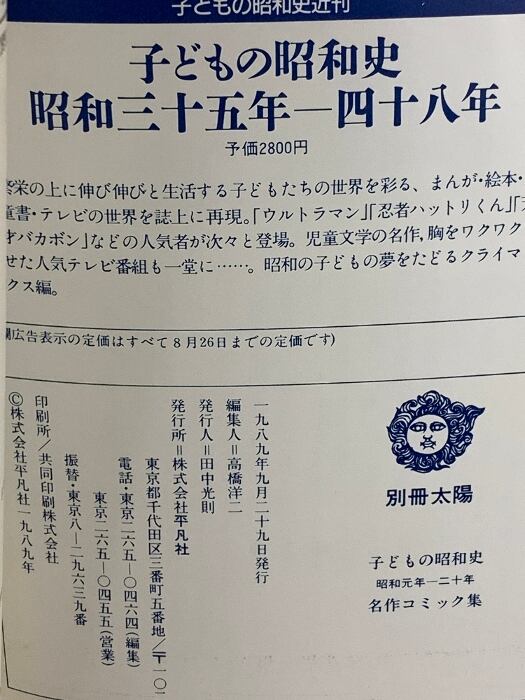 46 別冊太陽 名作コミック集 子ども昭和史 昭和元年ー二十年 1989 平凡社