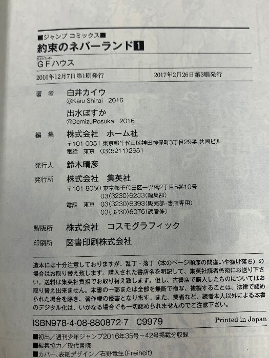 約束のネバーランド 1~20巻 漫画 全巻セット ジャンプコミックス 出水ぽすか 集英社 少年コミック 約束のネバーランド (1~20巻セット)