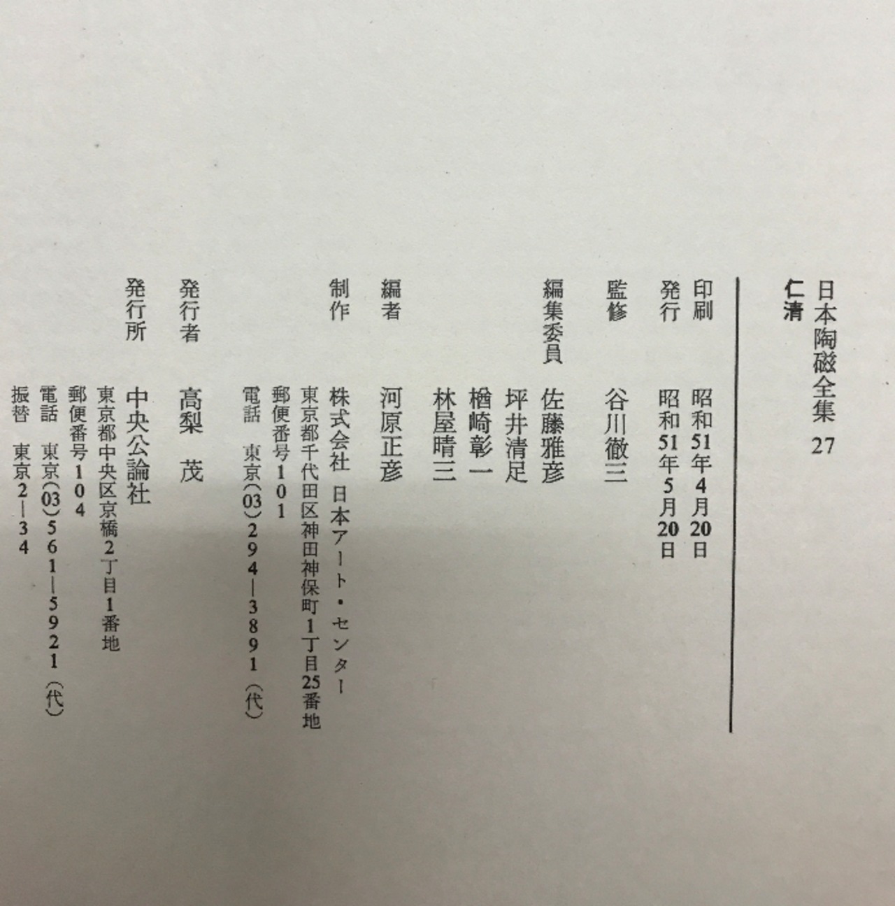 タイトル:日本陶磁全集〈27〉仁清 中央公論社 監修:谷川徹三