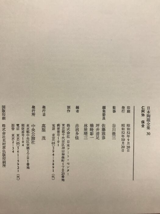 日本陶磁全集〈30〉仁阿弥 保全 中央公論社 監修:谷川徹三