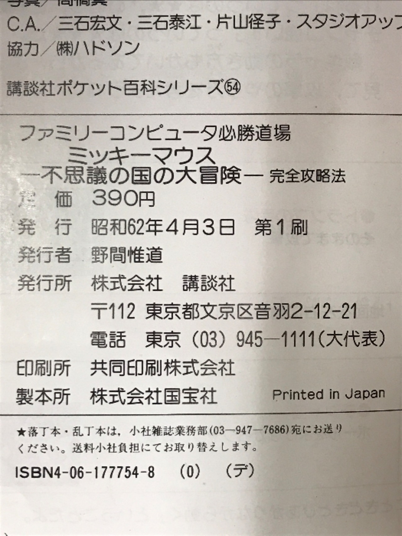 タイトル:【初版】ミッキーマウス不思議の国の大冒険完全攻略法 (講談社ポケット百科シリーズ 54 ファミリーコンピュータ必勝) 講談社