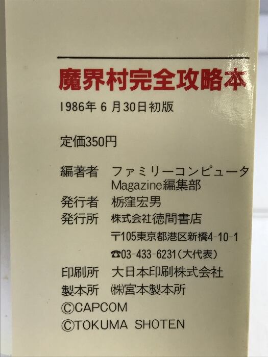 タイトル:【初版】魔界村完全攻略本 徳間書店 ファミリーコンピュータMagazine編