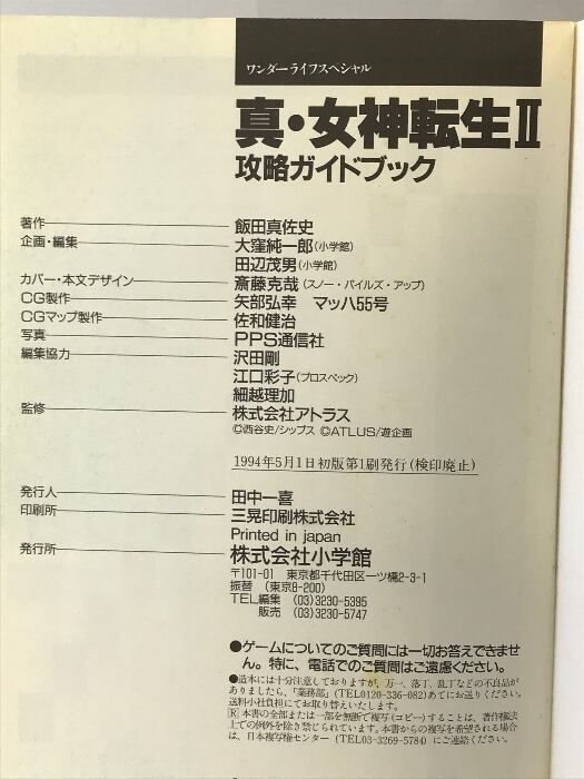 【初版】真・女神転生2 スーパーファミコンソフト攻略ガイドブック 小学館
