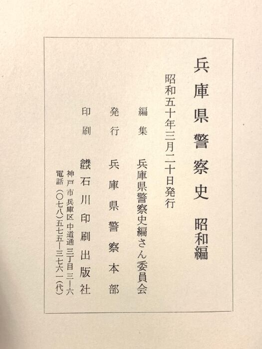 タイトル:兵庫県警察史 昭和編 昭和50年発行
