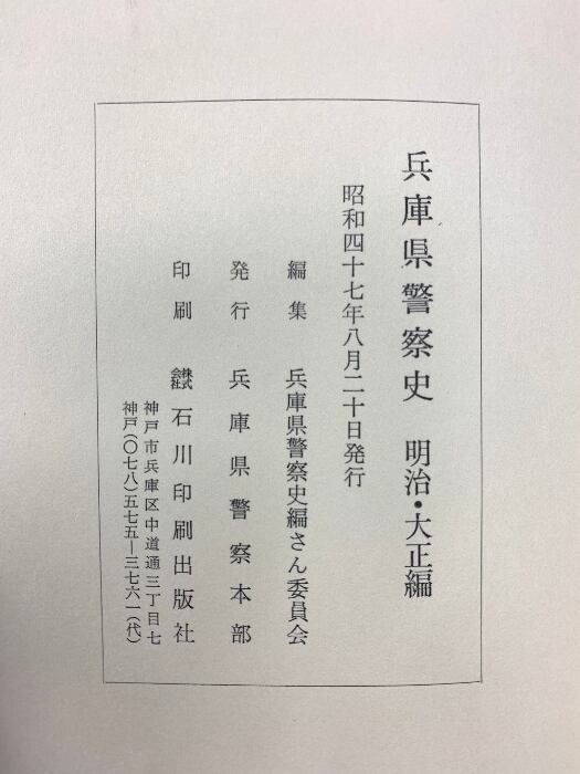 兵庫県警察史 明治・大正編 昭和47年発行