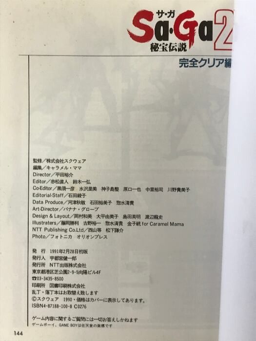 タイトル:【初版】サ・ガ2 (秘宝伝説) 完全クリア編: GAME BOY エヌティティ出版