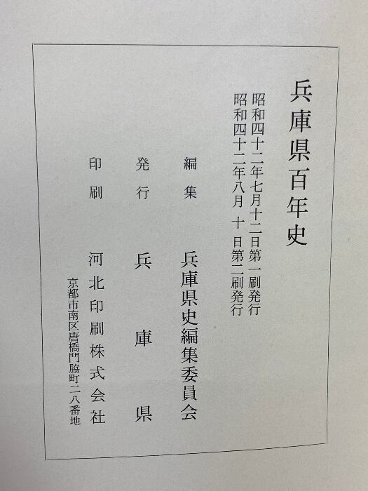 タイトル:兵庫県百年史 昭和42年発行