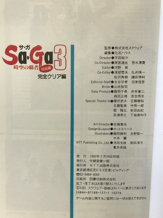 【初版】Sa・Ga3 完全クリア編: 時空の覇者 完結編 (SQUARE BRAND) エヌティティ出版 化石ハウス