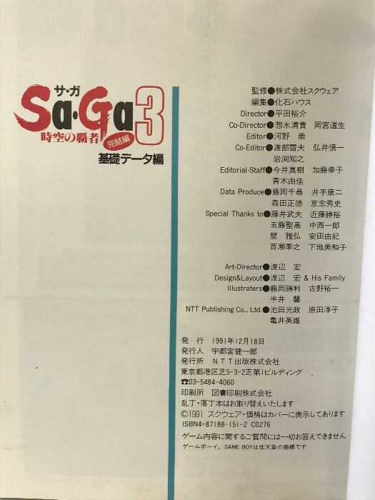 【初版】サ・ガ 3 (時空の覇者) 完結編 エヌティティ出版