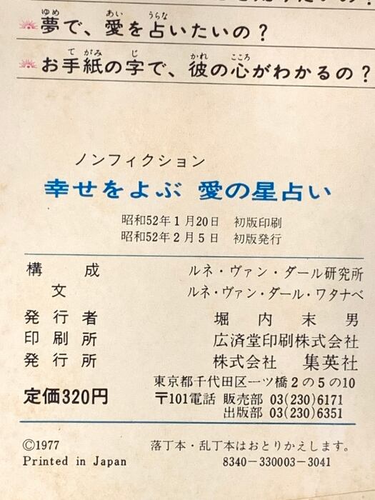 タイトル:幸せをよぶ愛の星占い 集英社 ルネ・ヴァン・ダール・ワタナベ
