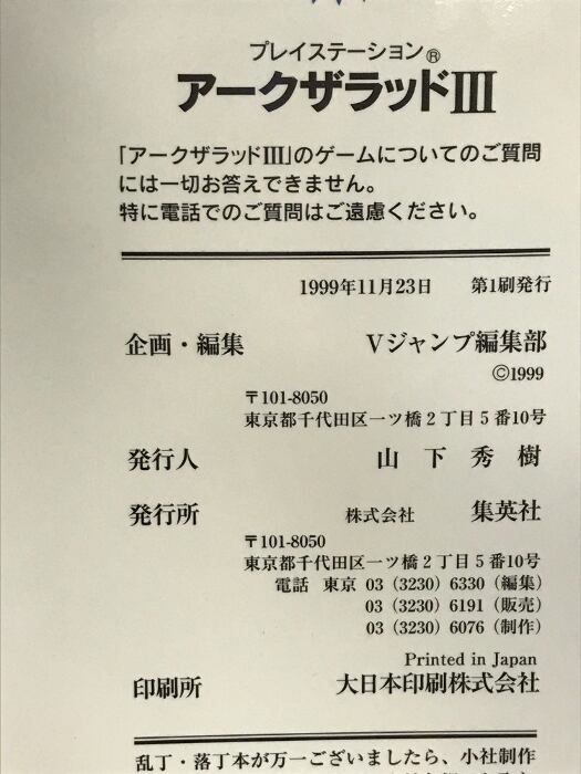 タイトル:【初版】アークザラッド3 (Vジャンプブックス ゲームシリーズ) 集英社 Vジャンプ編集部