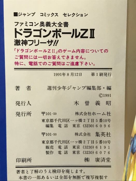【初版】ファミコン奥義大全書ドラゴンボールZ2激神フリーザ (ジャンプコミックスセレクション) ホーム社