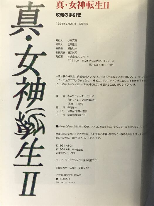 タイトル:【初版】真・女神転生II: 攻略の手引き アスペクト アスキー出版局