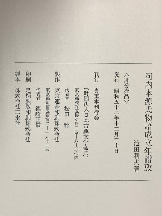 尾州家河内本源氏物語開題 日本古典文学会 山岸 徳平 2冊セット