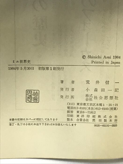 タイトル:ミニ世界史: 日付が語るこの100年 社会思想社 荒井 信一
