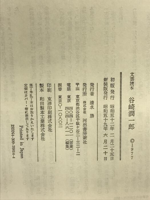 谷崎潤一郎 (新装版文芸読本) 河出書房新社 発行者:清水勝