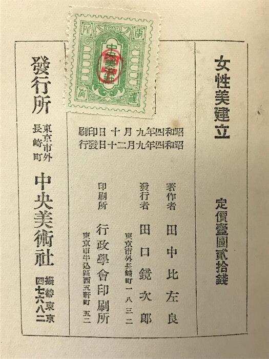 タイトル:女性美建立 中央美術社 著:田中比左良 昭和4年
