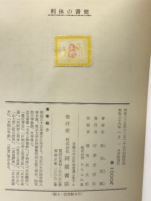 タイトル:利休の書簡 河原書店 著:桑田忠親