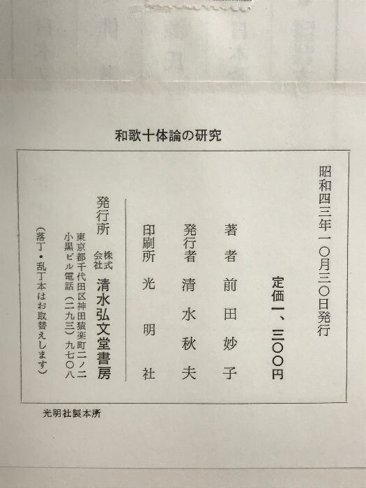 和歌十体論の研究 清水弘文堂書房 前田 妙子