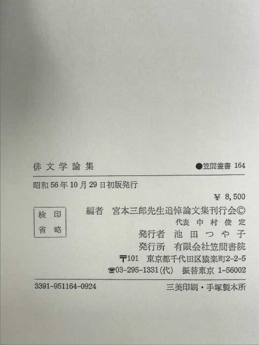 タイトル:俳文学論集 (笠間叢書〈164〉) 笠間書院 宮本 三郎