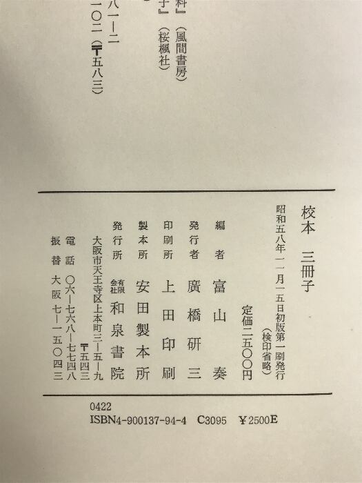 校本三冊子 和泉書院 富山 奏 (和泉古典文庫2)