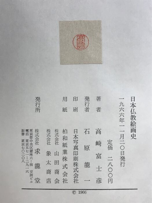 【図録】日本仏教絵画史 求龍堂 著:高崎冨士彦 1966年
