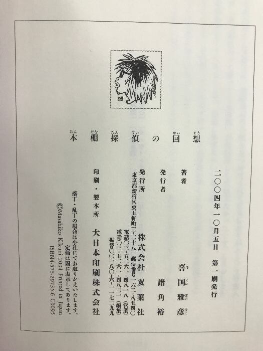 タイトル:【初版】本棚探偵の回想 双葉社 著:喜国雅彦 2004年