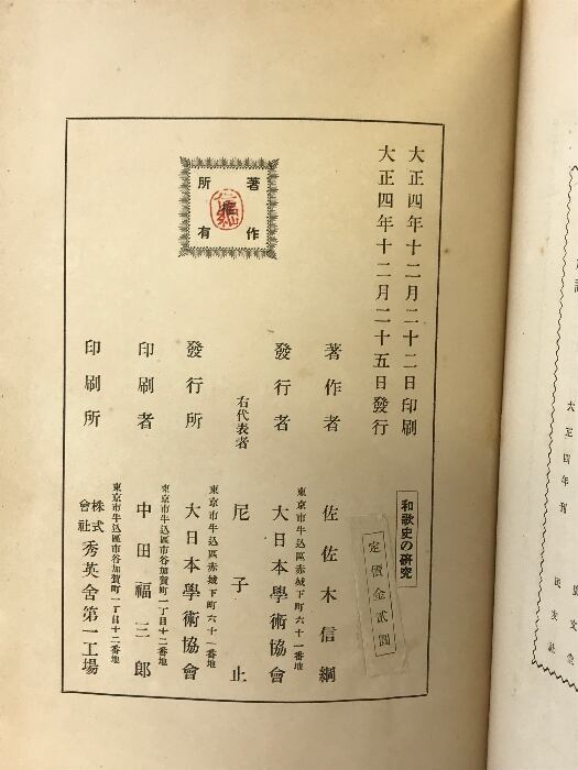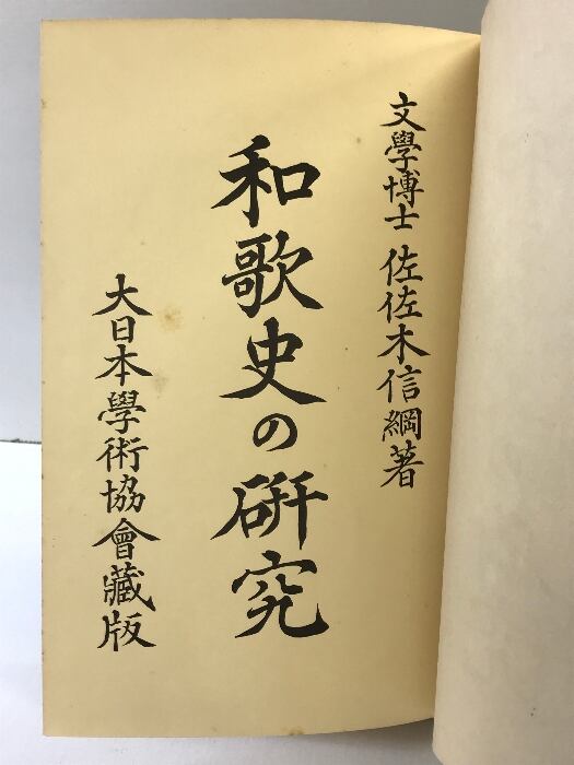 タイトル:和歌史の研究 大日本學術協會(学術協会)著:佐佐木信綱 大正4年