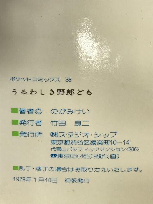 【初版】うるわしき野郎ども(ポケットコミックス33) 発行:スタジオシップ 著:のがみけい