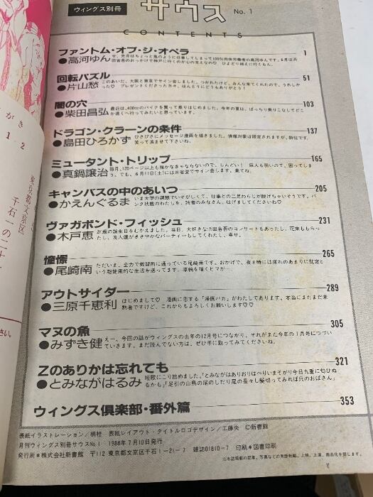 11 サウス No.1 ウィングス別冊 昭和63年7月10日 オール新作読み切り 柴田昌弘 高河ゆん 真鍋譲治 片山愁