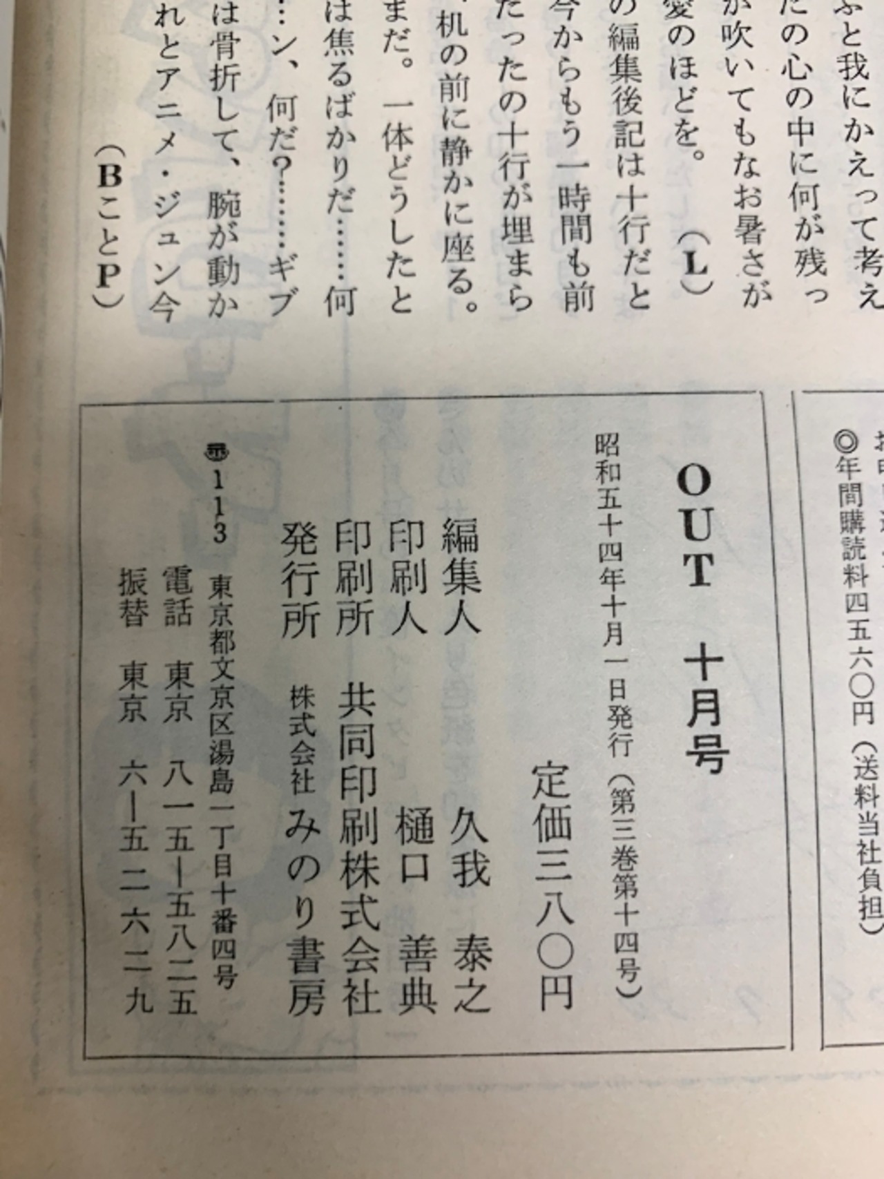 12 月刊OUT アウト 昭和54年10月号 みのり書房 大特集 いま注目の人気SFアニメ 機動戦士ガンダム ミックスサンド サイレン戦記
