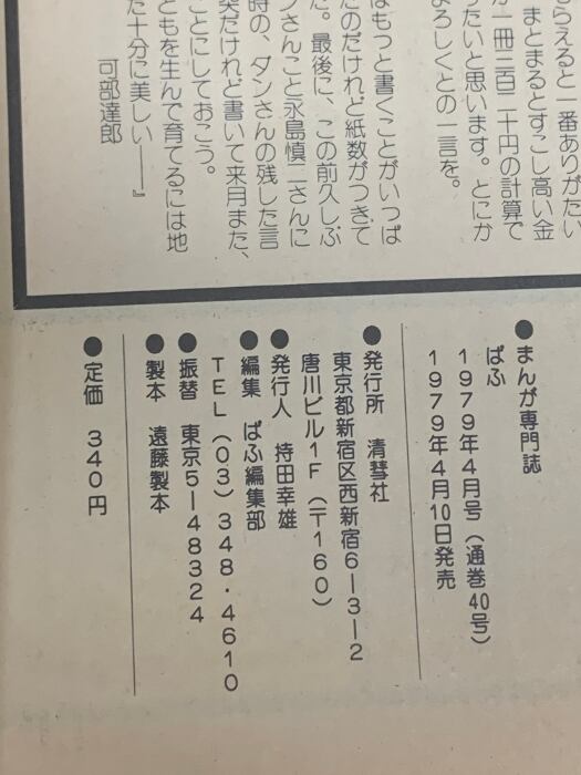 ぱふ 1979年3月10日 4月号 vol.3 特集 萩尾望都の世界Part1 大島弓子 橋本治