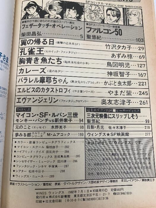 タイトル:WINGS ウィングス 創刊号 昭和57年7月1日 新書館 聖悠紀 モンキーパンチ 柴田昌弘 新井素子