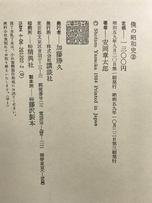 僕の昭和史(1~3/全3冊セット)講談社 安岡章太郎 昭和59年~昭和63年