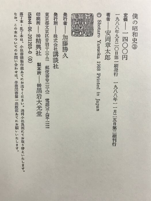 タイトル:僕の昭和史(1~3/全3冊セット)講談社 安岡章太郎 昭和59年~昭和63年