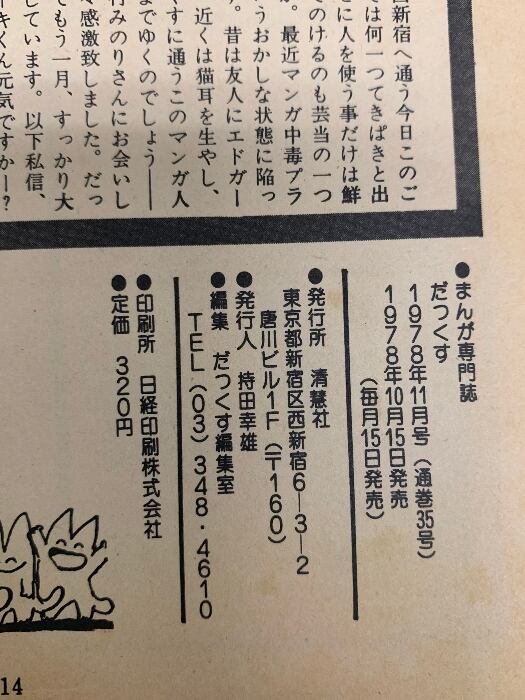 タイトル:だっくす 1978年11月号 特集 樹村みのり 未発表作 窓辺の人 森雅之作品集