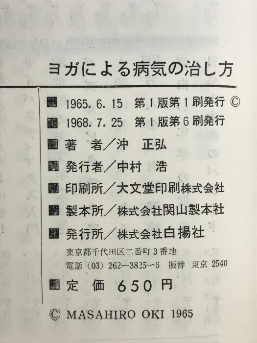 タイトル:ヨガによる病気の治し方 白揚社 著:沖正弘
