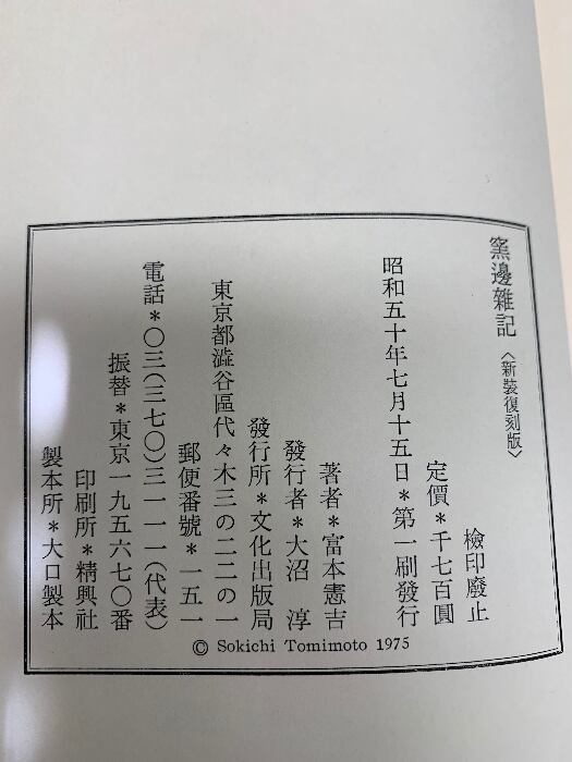 窯辺雜記 文化出版局 富本憲吉 窯邊雜記 昭和50年