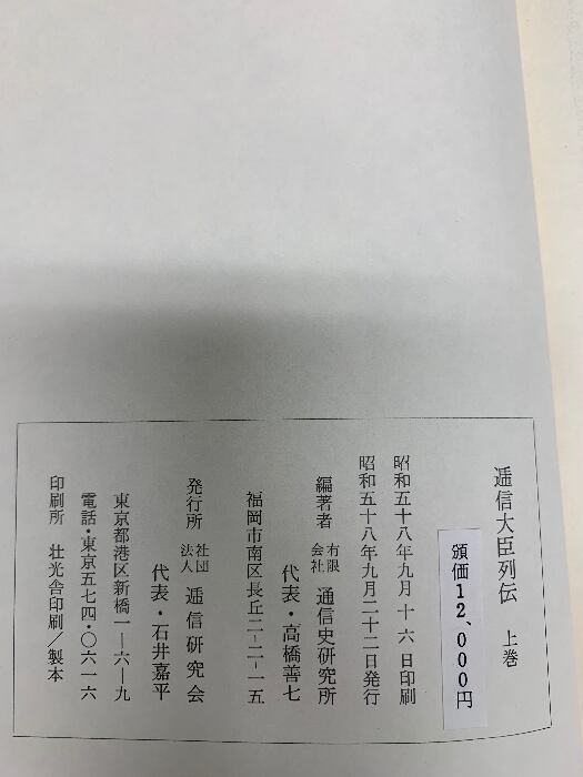 タイトル:逓信大臣列伝 上・下 逓信研究会 2巻セット